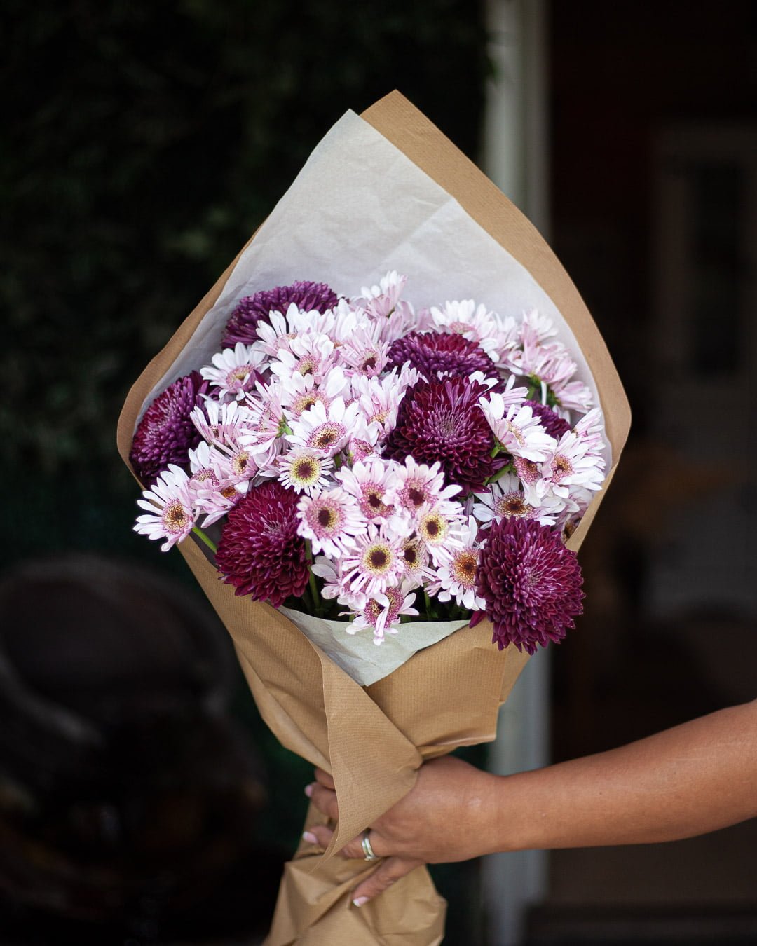 Posibles Flores: Alelíes, Aster, Caspia, Crisantemo, Delphiniums, Felpillas, Gerberas, Margaritas, Snap