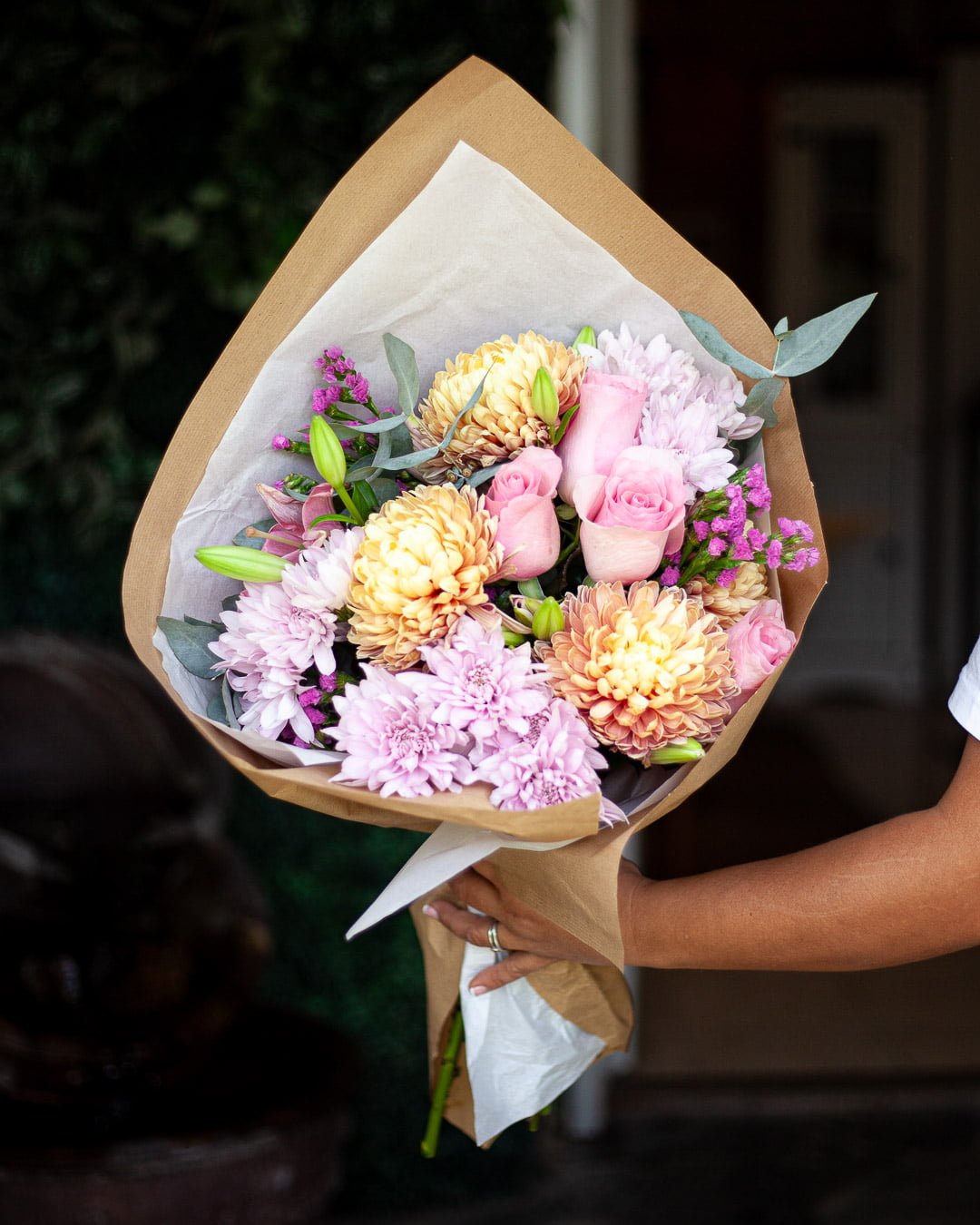La variedad de flores disponibles en cada ramo puede variar según la época del año. Haremos nuestro mejor esfuerzo en incluir los mismos colores que se muestran en la fotografía.